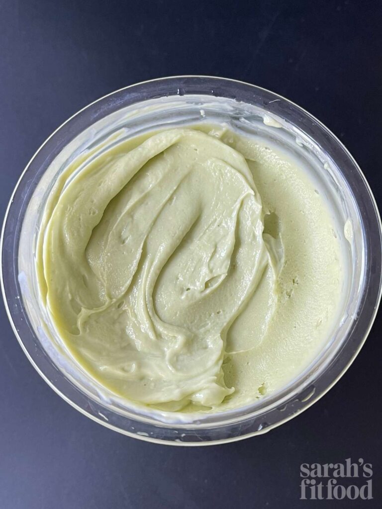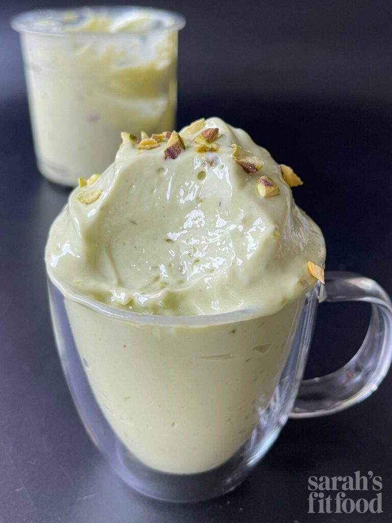 With 2–4 scoops of vanilla protein powder, depending on your preferences, you get a serious protein boost without that artificial aftertaste. It just tastes like pistachio ice cream while meeting your protein goals.